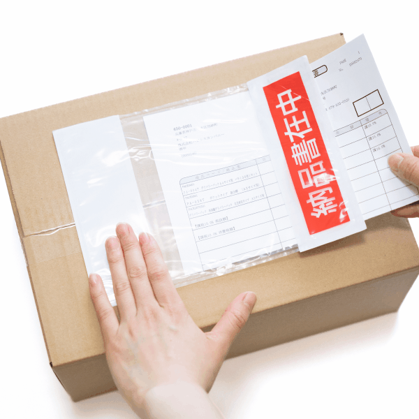 剥離紙をはがし、デリバリーパックを貼り付けます。
