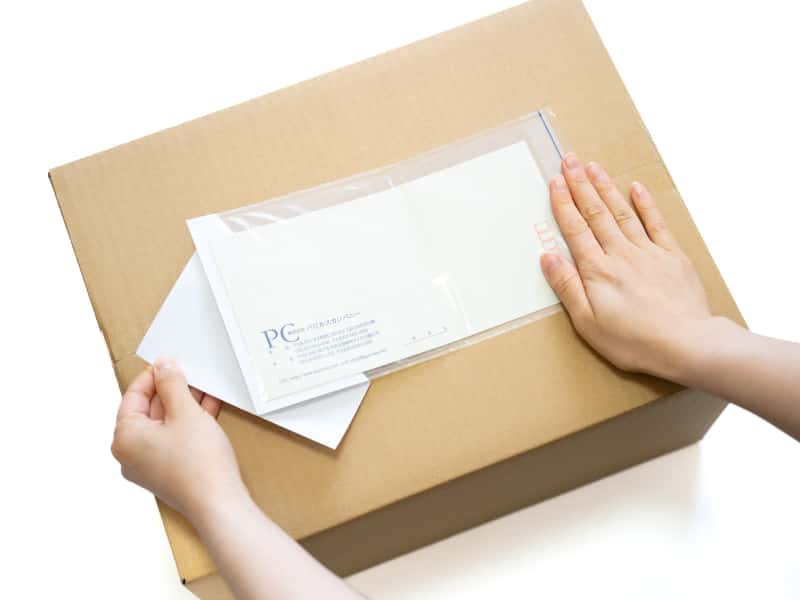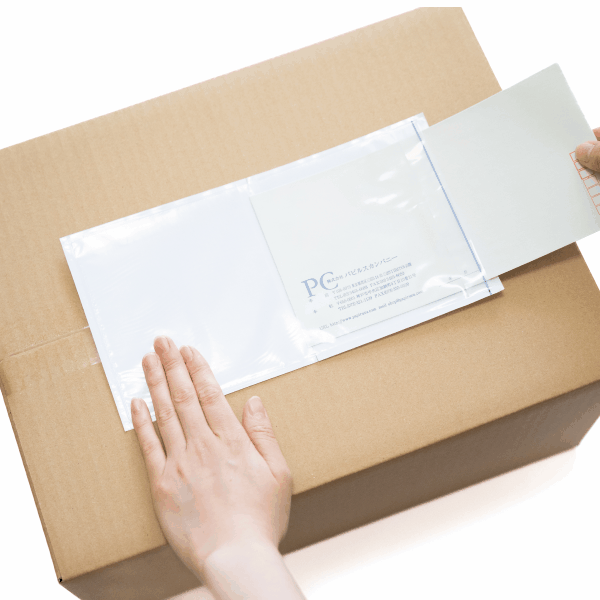 剥離紙をはがし、デリバリーパックを貼り付けます。