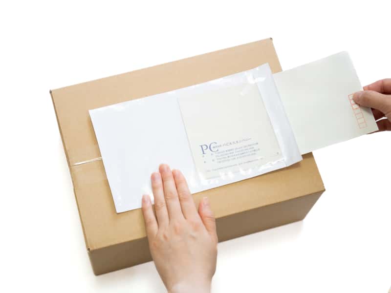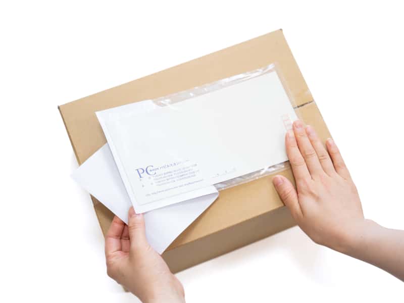 剥離紙をはがし、デリバリーパックを貼り付けます。