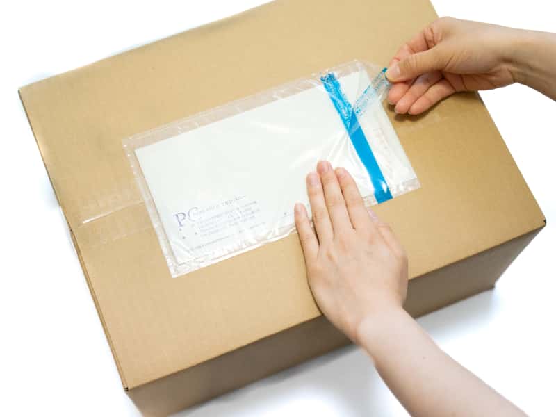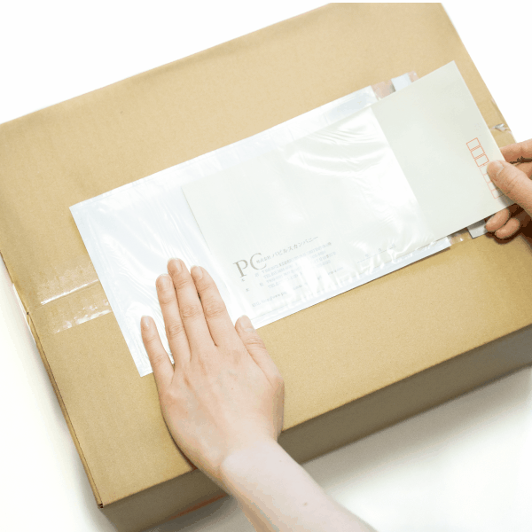 剥離紙をはがし、デリバリーパックを貼り付けます。