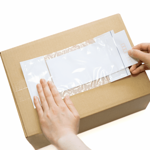 剥離紙をはがし、デリバリーパックを貼り付けます。