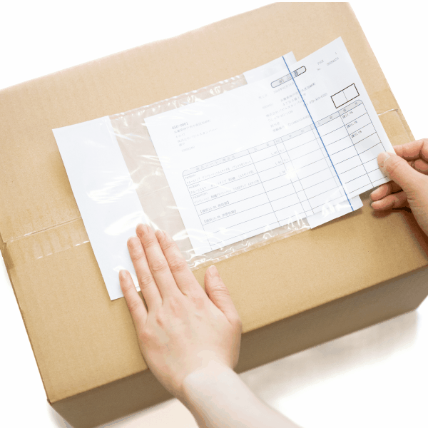 ●封入口にかえし機能(上フィルム内側折り返し)が付いていますので、伝票が落ちにくくなっています。