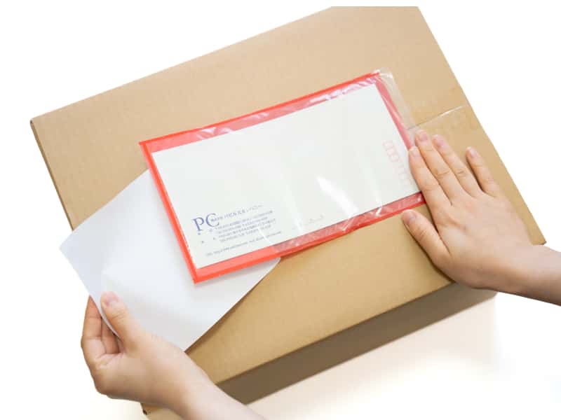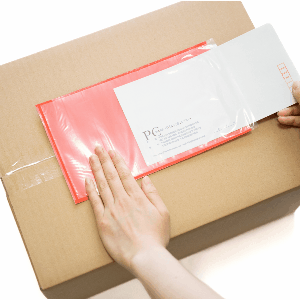 剥離紙をはがし、デリバリーパックを貼り付けます。