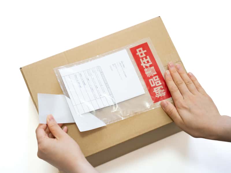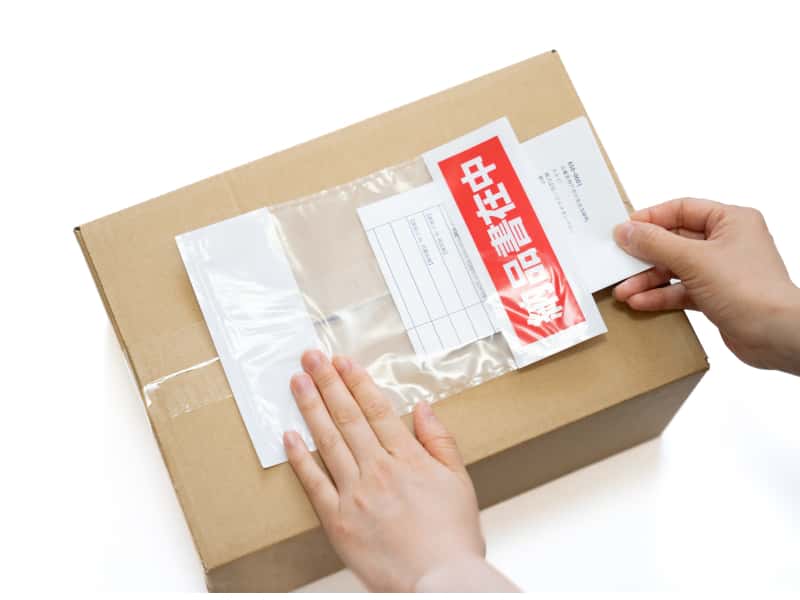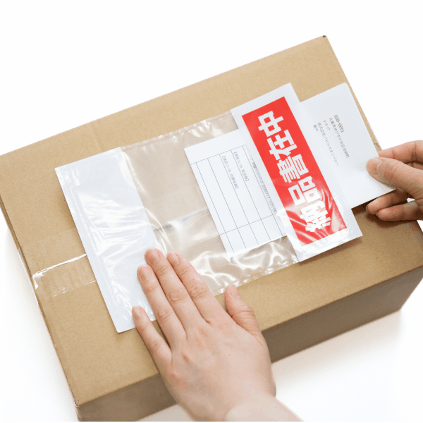 剥離紙をはがし、デリバリーパックを貼り付けます。