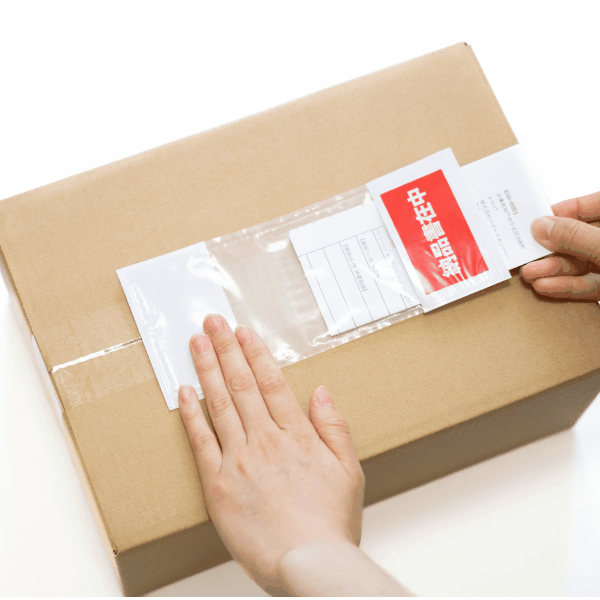 剥離紙をはがし、デリバリーパックを貼り付けます。