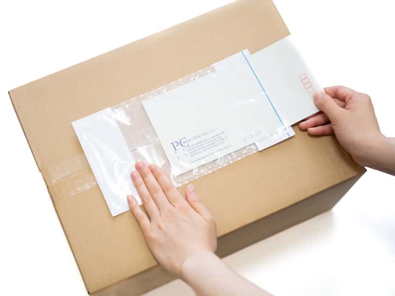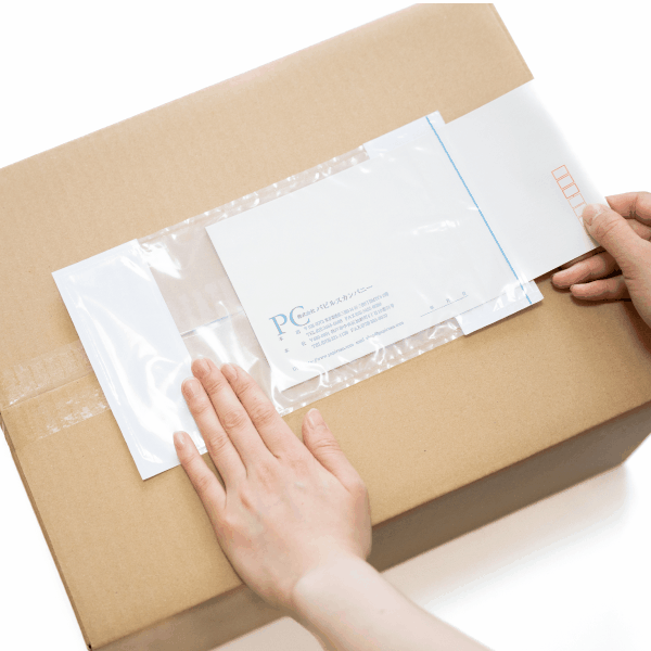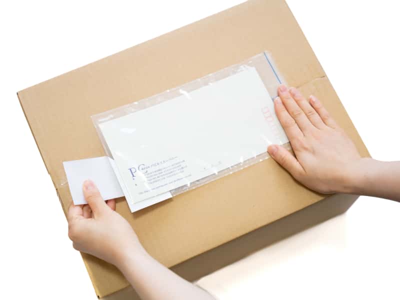 剥離紙をはがし、デリバリーパックを貼り付けます。