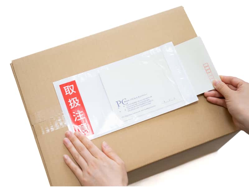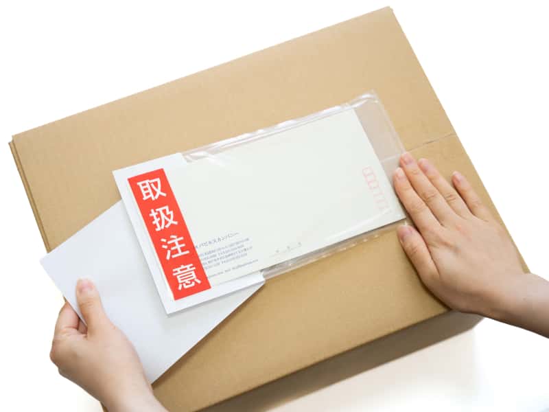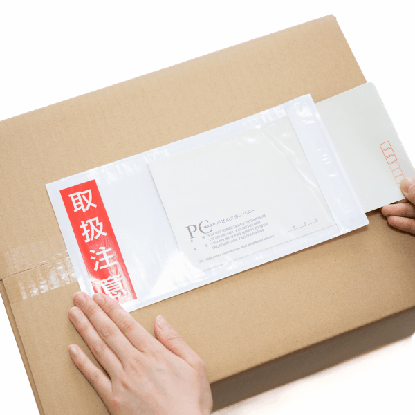 剥離紙をはがし、デリバリーパックを貼り付けます。