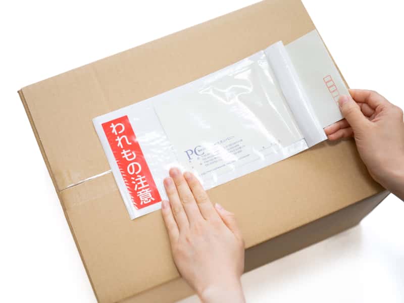 剥離紙をはがし、デリバリーパックを貼り付けます。