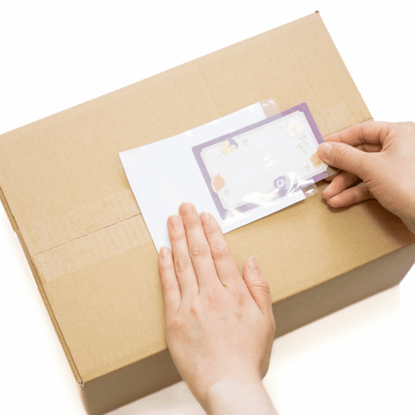 剥離紙をはがし、デリバリーパックを貼り付けます。