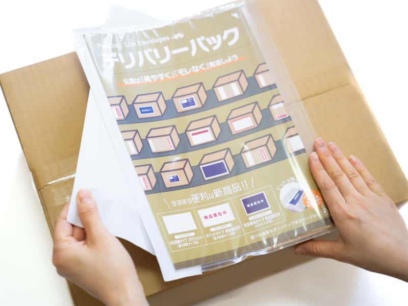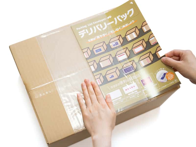 剥離紙をはがし、デリバリーパックを貼り付けます。