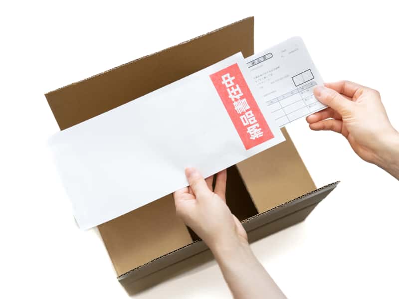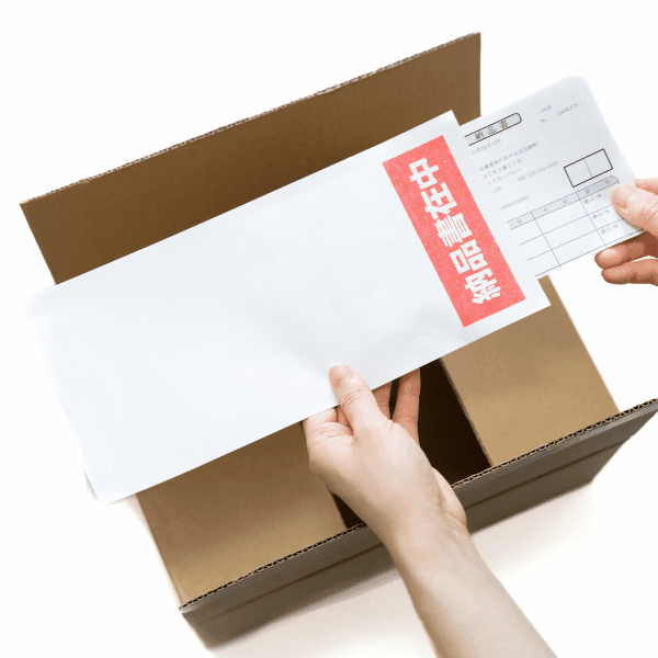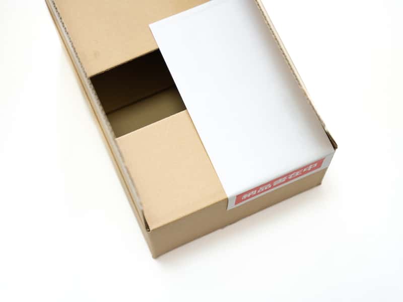 ●納品書在中の印刷部分が見えるように箱の外側に貼るので、伝票の所在が一目瞭然です。