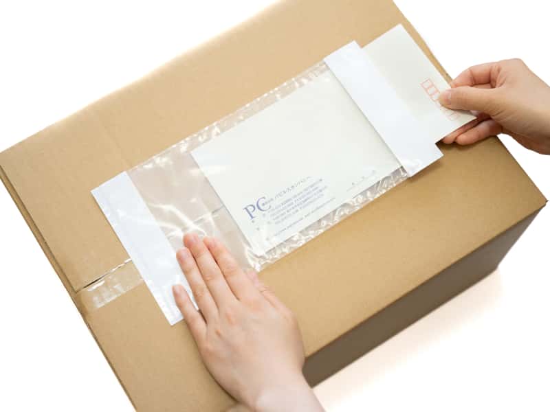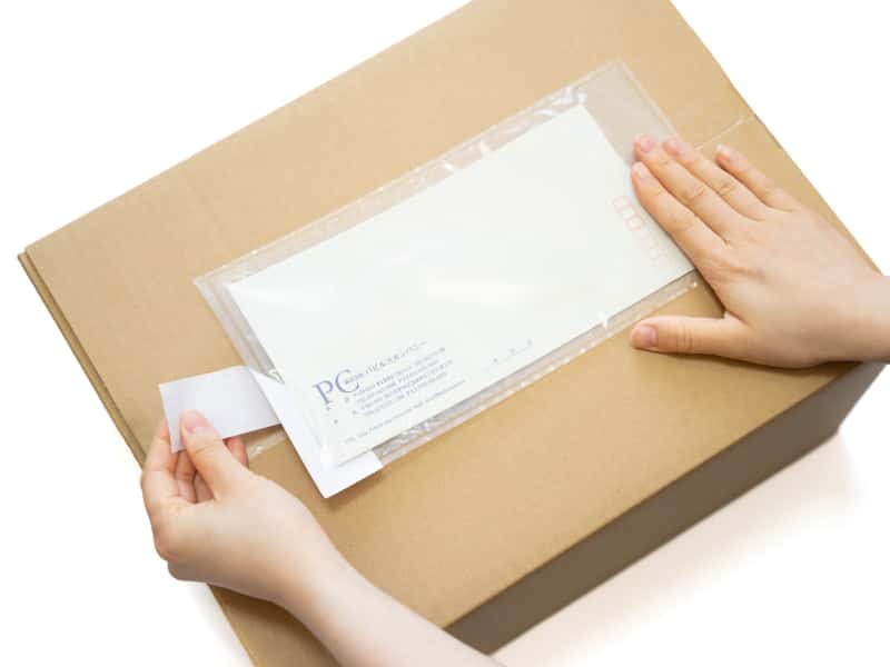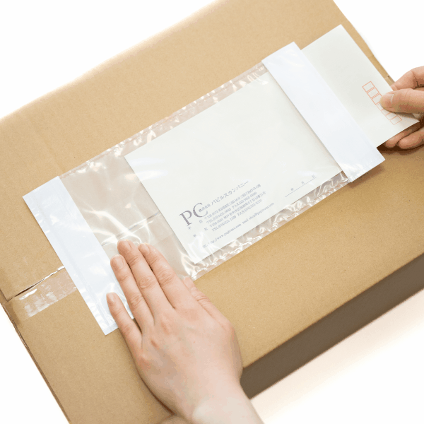 剥離紙をはがし、デリバリーパックを貼り付けます。