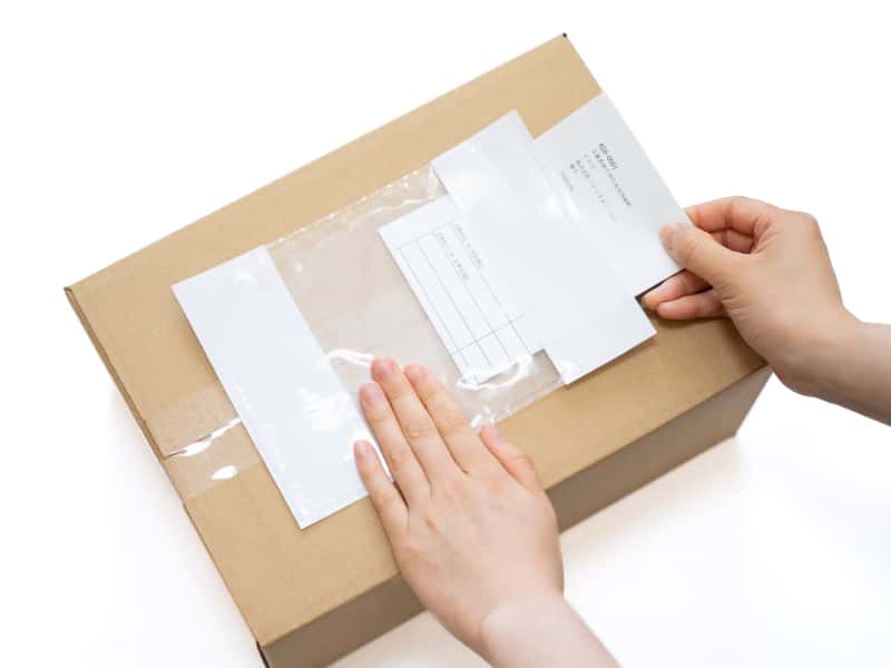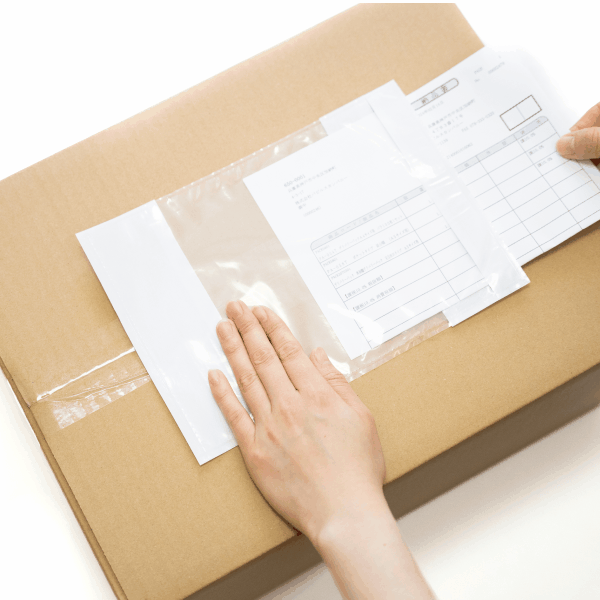 剥離紙をはがし、デリバリーパックを貼り付けます。
