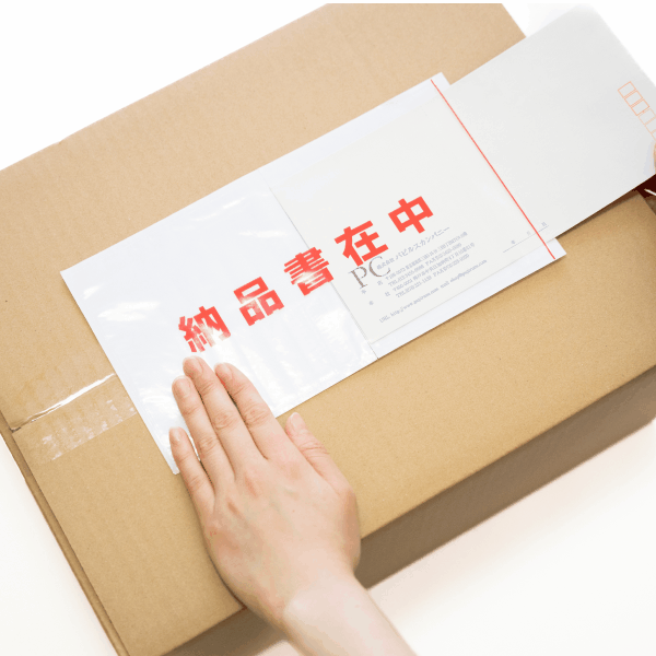 剥離紙をはがし、デリバリーパックを貼り付けます。