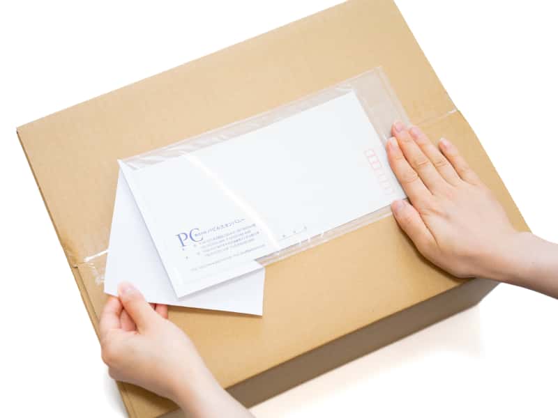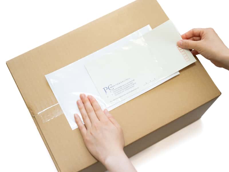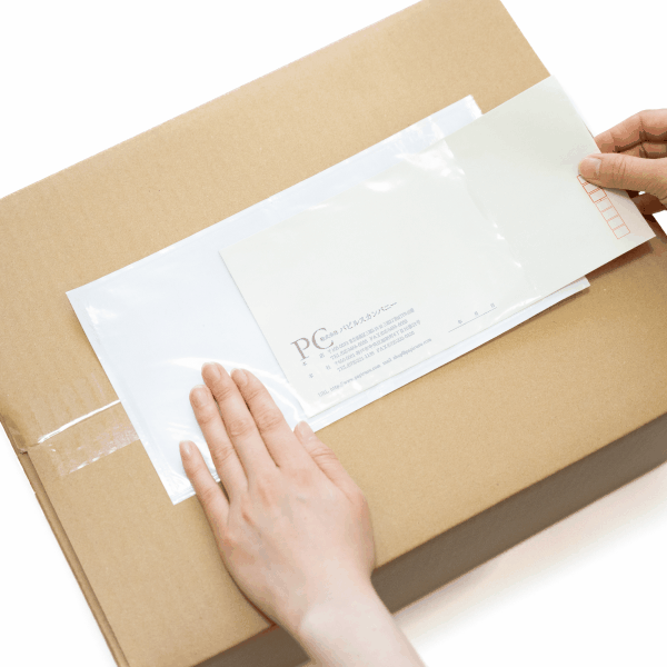 剥離紙をはがし、デリバリーパックを貼り付けます。