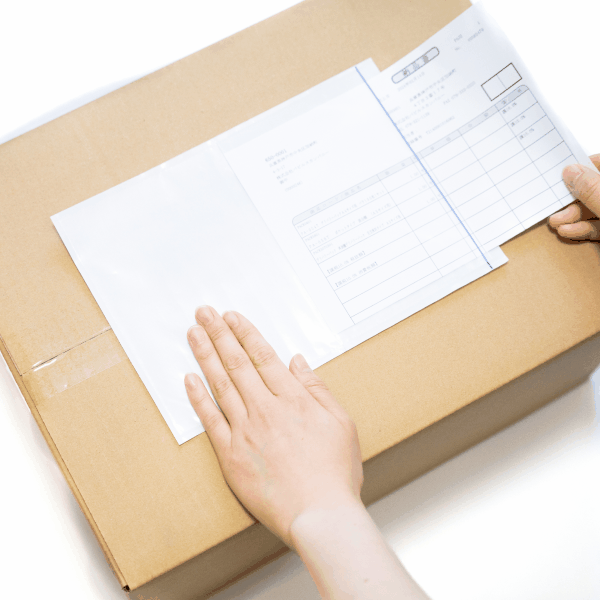 剥離紙をはがし、デリバリーパックを貼り付けます。