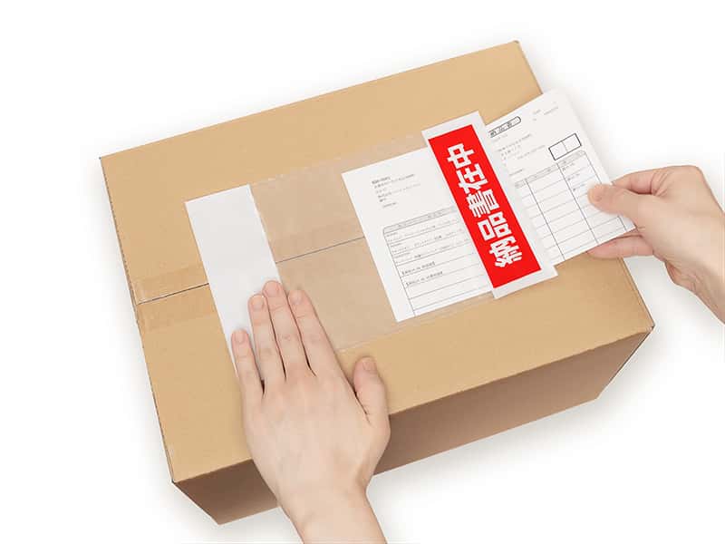 剥離紙をはがし、デリバリーパックを貼り付けます。