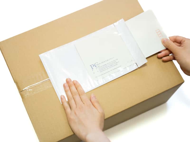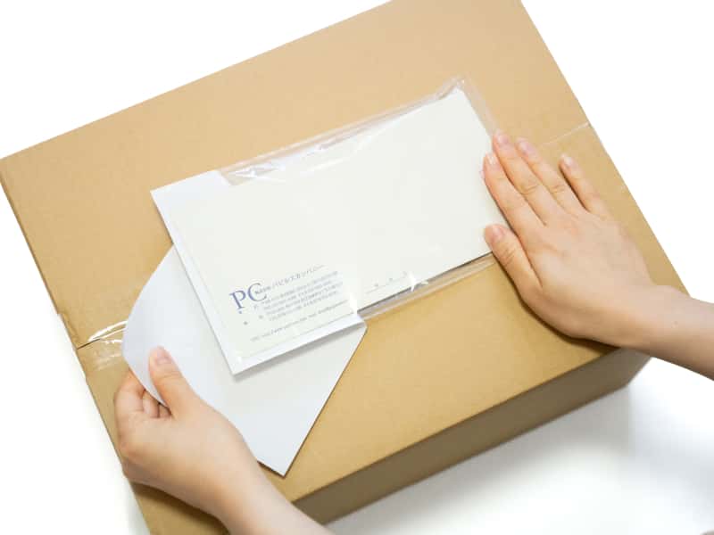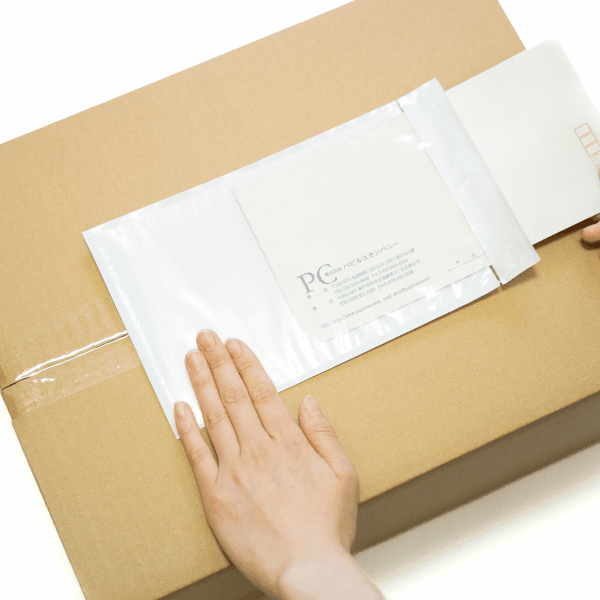 剥離紙をはがし、デリバリーパックを貼り付けます。