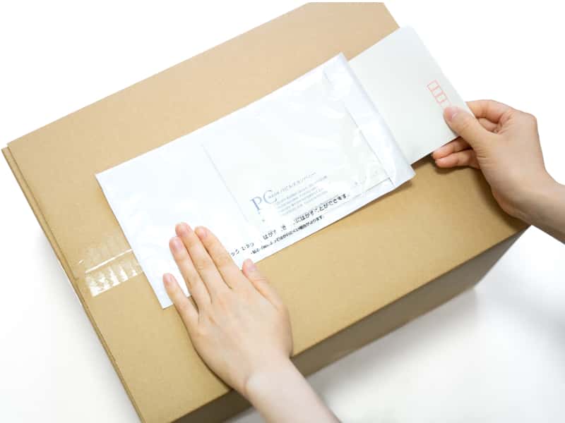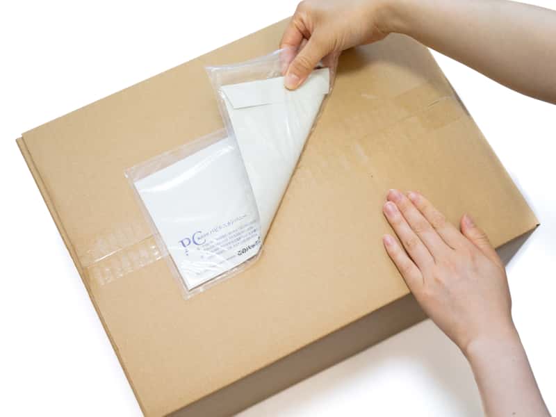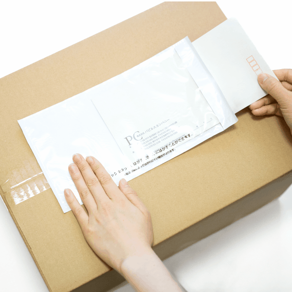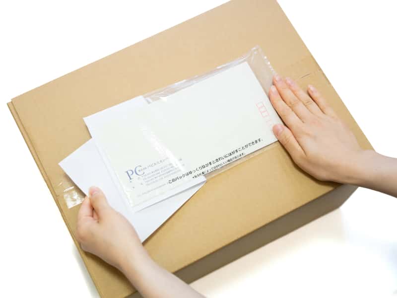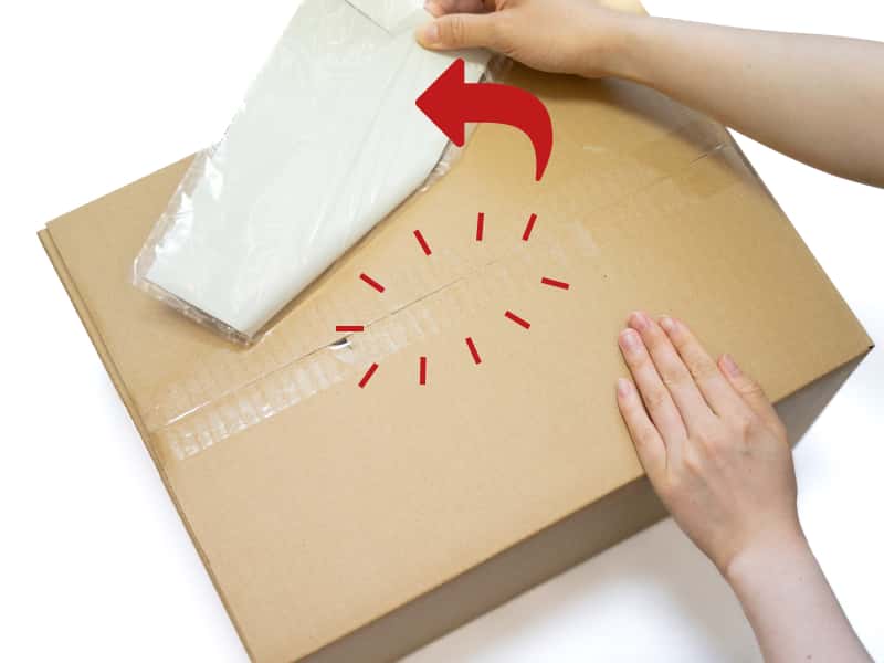 剥離紙をはがし、デリバリーパックを貼り付けます。