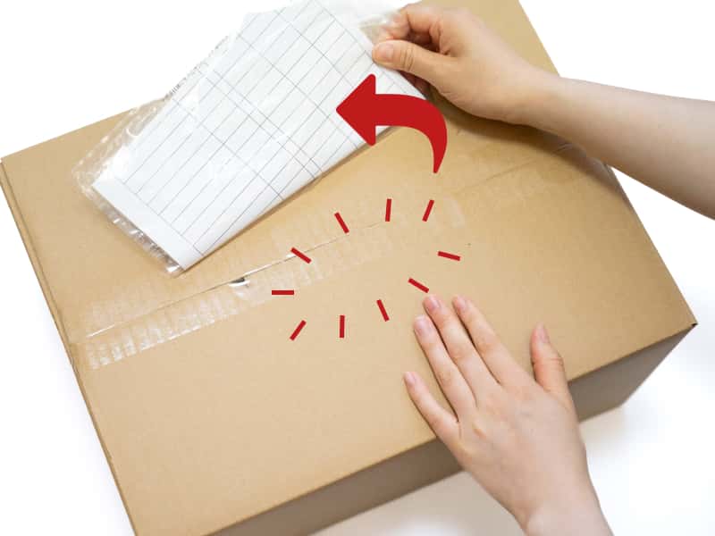 剥離紙をはがし、デリバリーパックを貼り付けます。