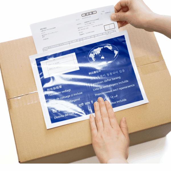 完全密封タイプ 全面糊青(白地)印刷 World Wide版納品書在中 透明窓付A5(A4 2つ折)サイズ用250mm×190mm
